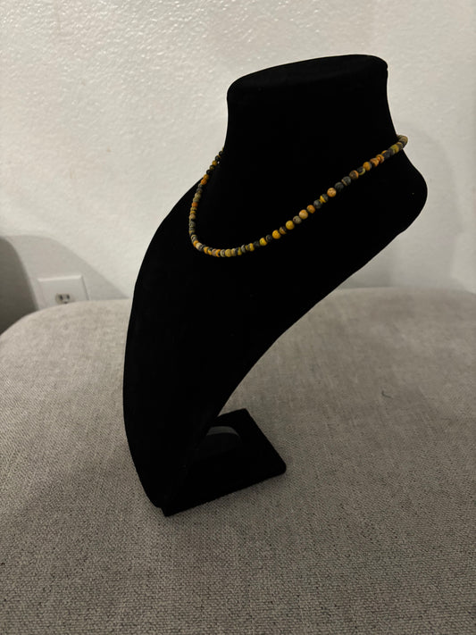 14” Bumblebee Jasper & Mustang Silver Pearl Choker Necklace