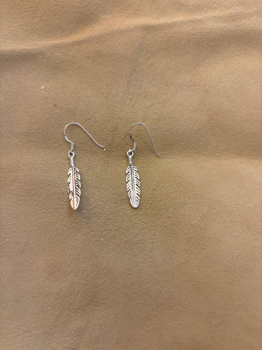 Earring, Silver Feather Dangles