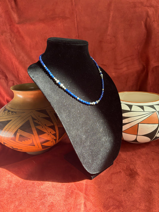 17” Premium Lapis Lazuli Necklace with Silver Pearl Accents