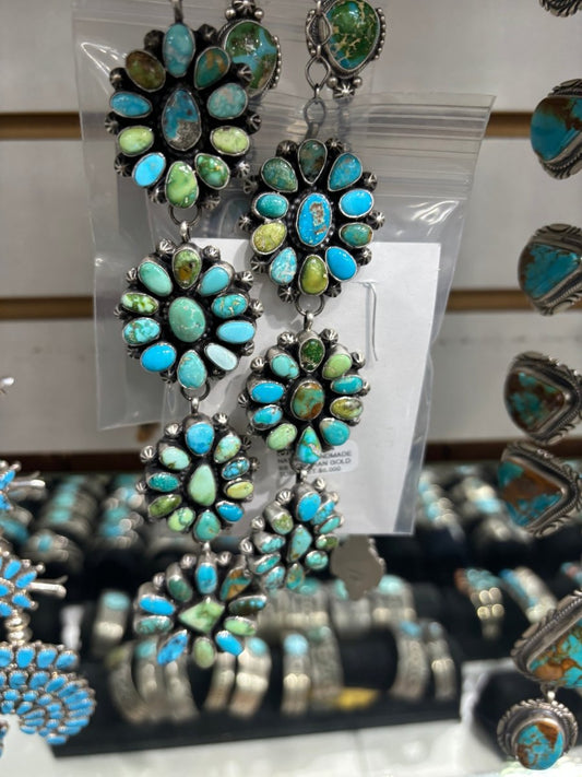 Necklace (2 pc. Set) 7 station, Sonoran Gold Turquoise Clusters, Lorenzo Juan, Navajo