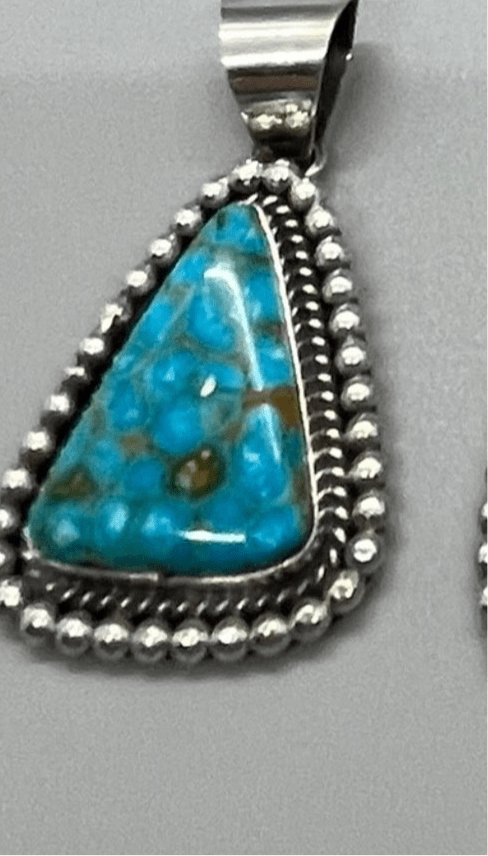 Pendant, Medium single stone freeform Royston or Kingman Ceremonial, Peterson Johnson