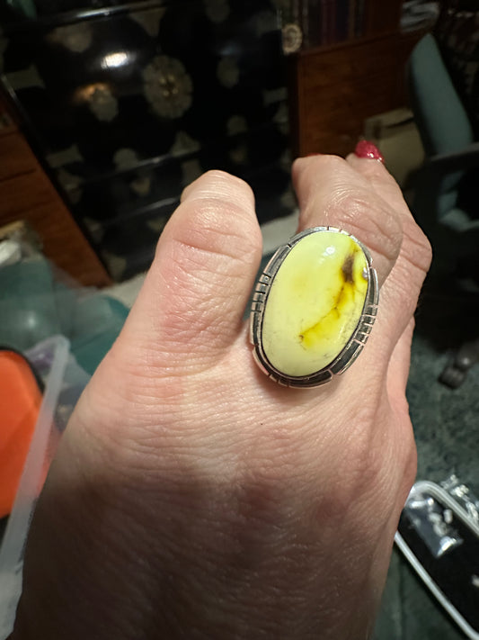 Solitaire Oval Palomino Ring with Filework Bezel, by Navajo Artist Sean Etsitty