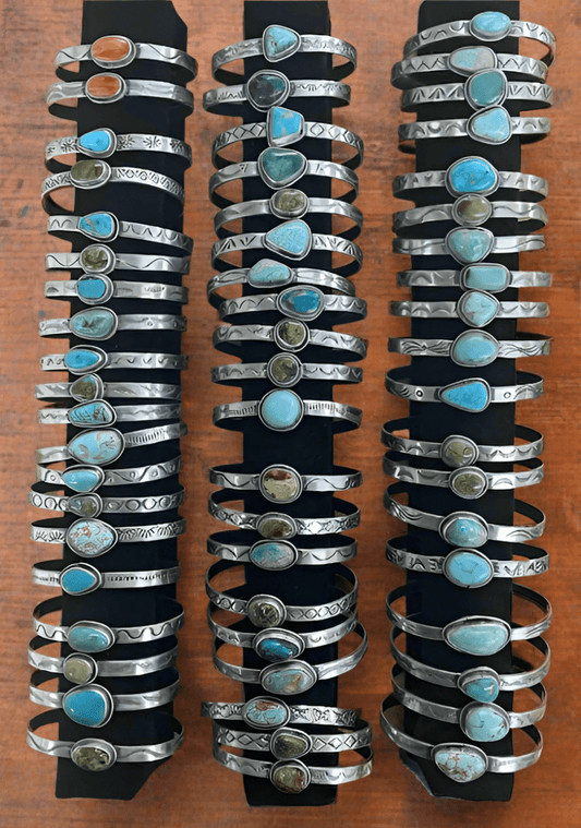 Our bracelet collection brings together finely crafted sterling silver and authentic gemstones in styles that range from delicate link and bead designs to bold statement pieces. Each bracelet highlights the artistry of Native American silversmiths, the legacy of Dan Dodson’s designs, and the modern edge of our Turquoise Mustang line.