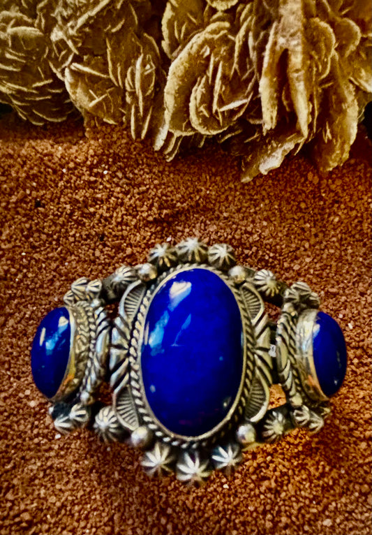 Lapis Lazuli 3-Ovals Cuff, by Navajo Artisan Rick Werito