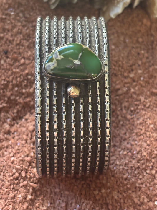 Stunning Tufa Cast Cuff with Olive Green Royston and 18ct Raindrop Embelishment by Arizona Anderson