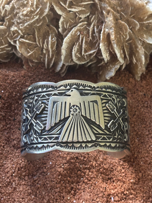 Wide Stamped Thunderbird Cuff by JO White
