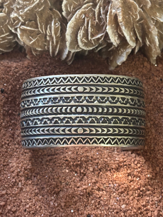 All Silver, 7-row Stamp Cuff, by Navajo Silversmith, by D Reeves