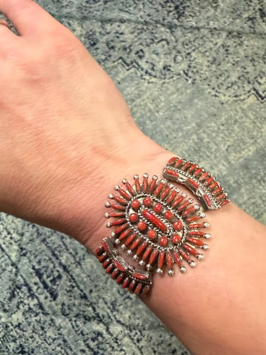 Zuni Needlepoint & Petit Point Coral Cuff, by artist Eva L. Wyaco
