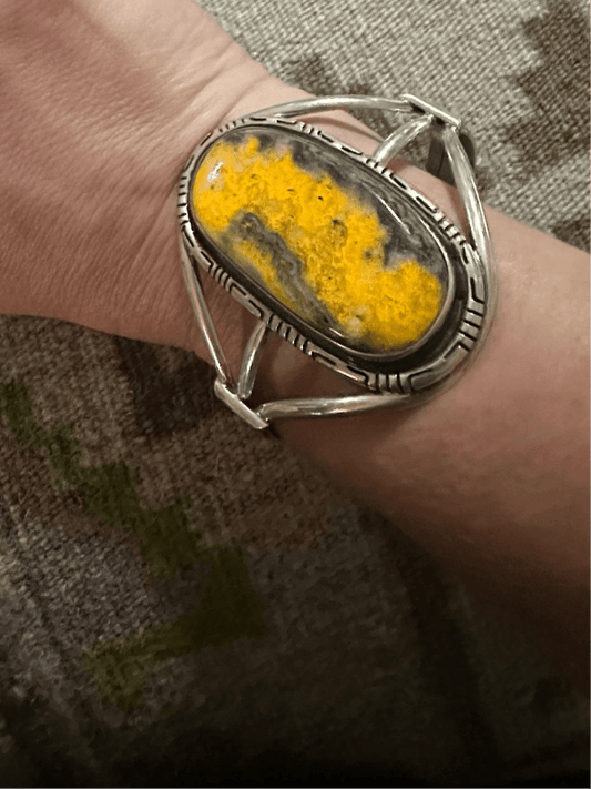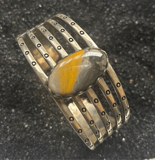 Elegant Sterling Silver Cuff with Large Oval Bumblebee Jasper Stone, Hallmarked