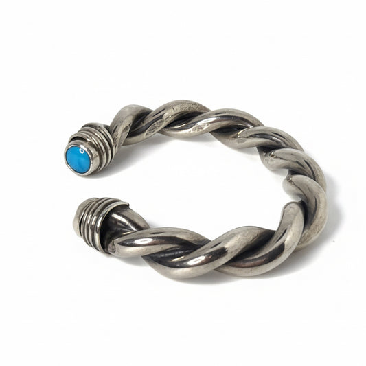 Heavy and Thick Double Twist Cuff Bracelet with Turquoise Endcap Stones