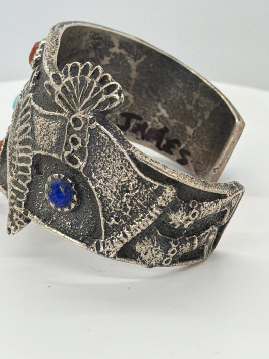 Tufa Cast Hummingbird Kachina Cuff with Cobblestone Inlay — Lester James