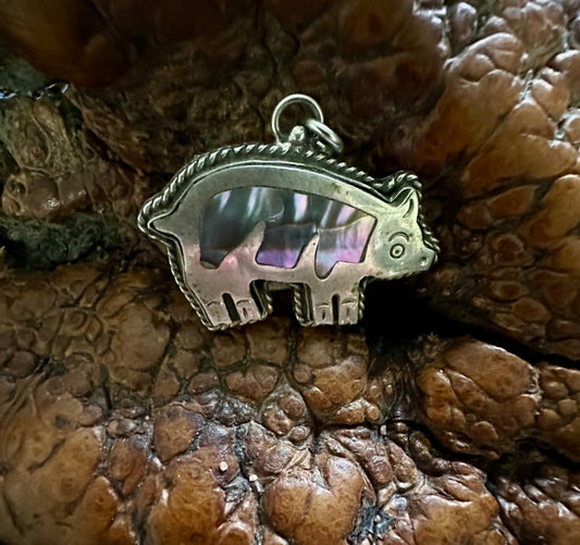Bracelet, Sand Cast with silver petroglyphs and pentagon stones, by Danny Romero