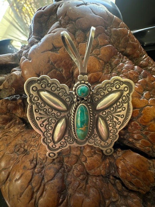 Pendant, Repousse Butterfly with Oval Royston Cab, HS hallmark