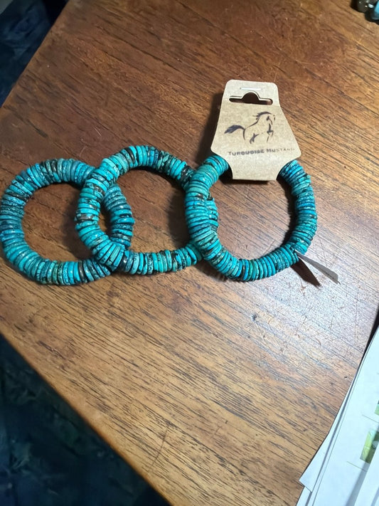 10mm Blue Cloud Mountain Turquoise Heishi Rondelle Stretch Bracelet (6.5”–8”)