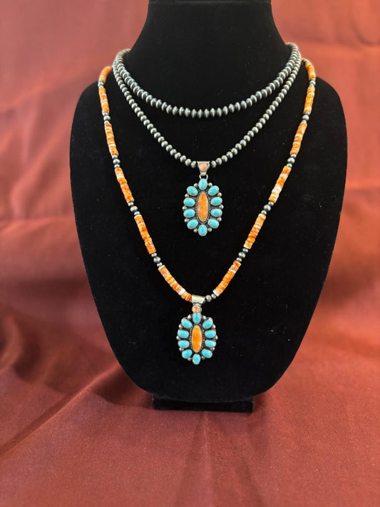 De Chelly, 11-Stone Kingman and Orange Spiny Oyster Cluster Pendant