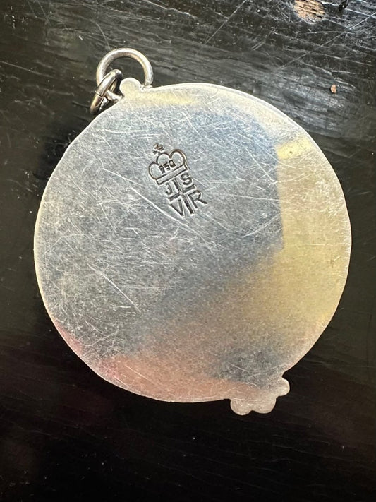 Alex Sanchez Sterling Silver Petroglyph Pendant with Round Turquoise Cabachon
