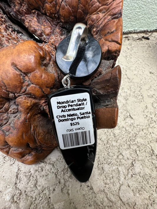 Mondrian-Inspired Drop Pendant with Inlay Mosaic by Chris Nieto, Santa Domingo Pueblo
