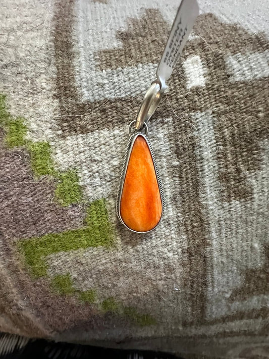 Orange Spiny Oyster Teardrop Pendant in Sterling Silver by Delbert Begay