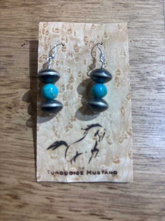 Bracelet, 12mm Polychrome Hubei Turquoise Rondelles with Navajo Pearls and Sterling clasp, Turquoise Mustang