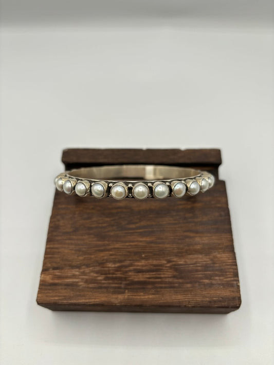 Bangle, Hammered w/ Pearl Rounds or onyx/lapis squares