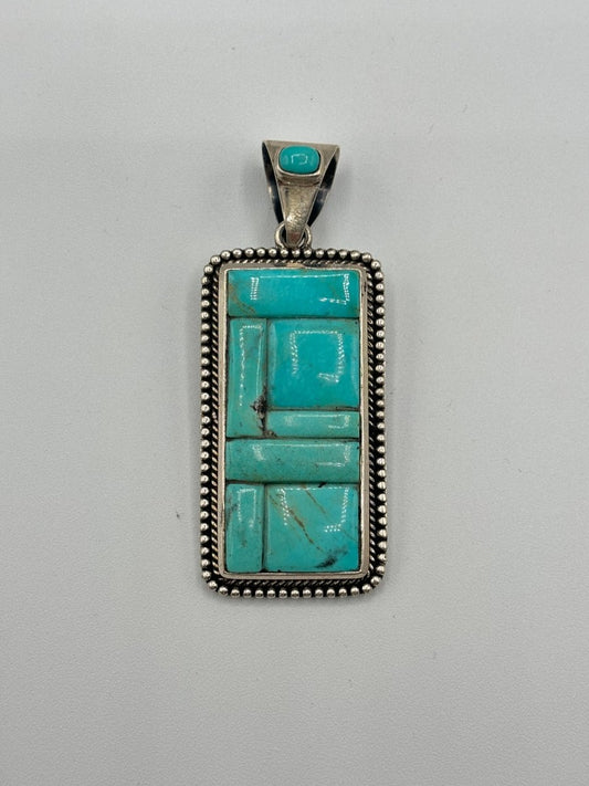 15" Green Kingman Turquoise Beaded Necklace with Reversible Silver Inlay Centerpiece