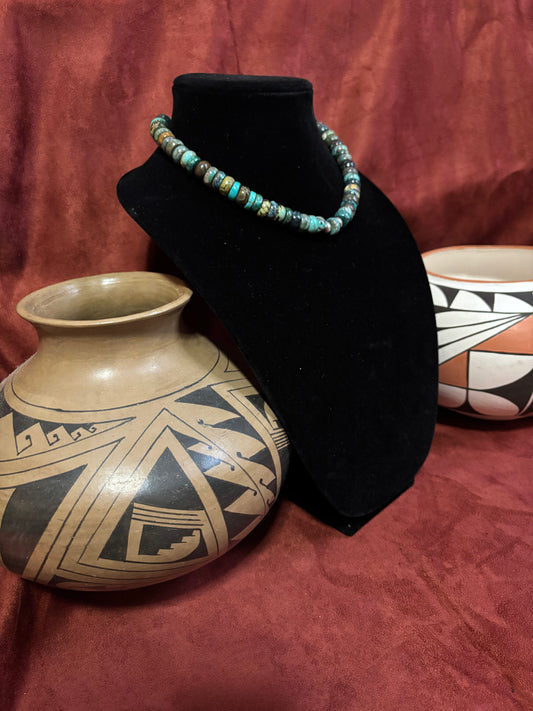 Where land and sea meet, beauty follows. The TerraMar Collection was born from that meeting place — terra for earth, mar for sea — and the way both shape the colors of the American West. Each necklace is hand-strung with turquoise, spiny oyster, onyx, jasper, and other natural stones, chosen for their balance of grit and grace. No two strands are alike, yet each carries the same spirit: the grounded strength of desert earth and the fluid calm of the open tide.