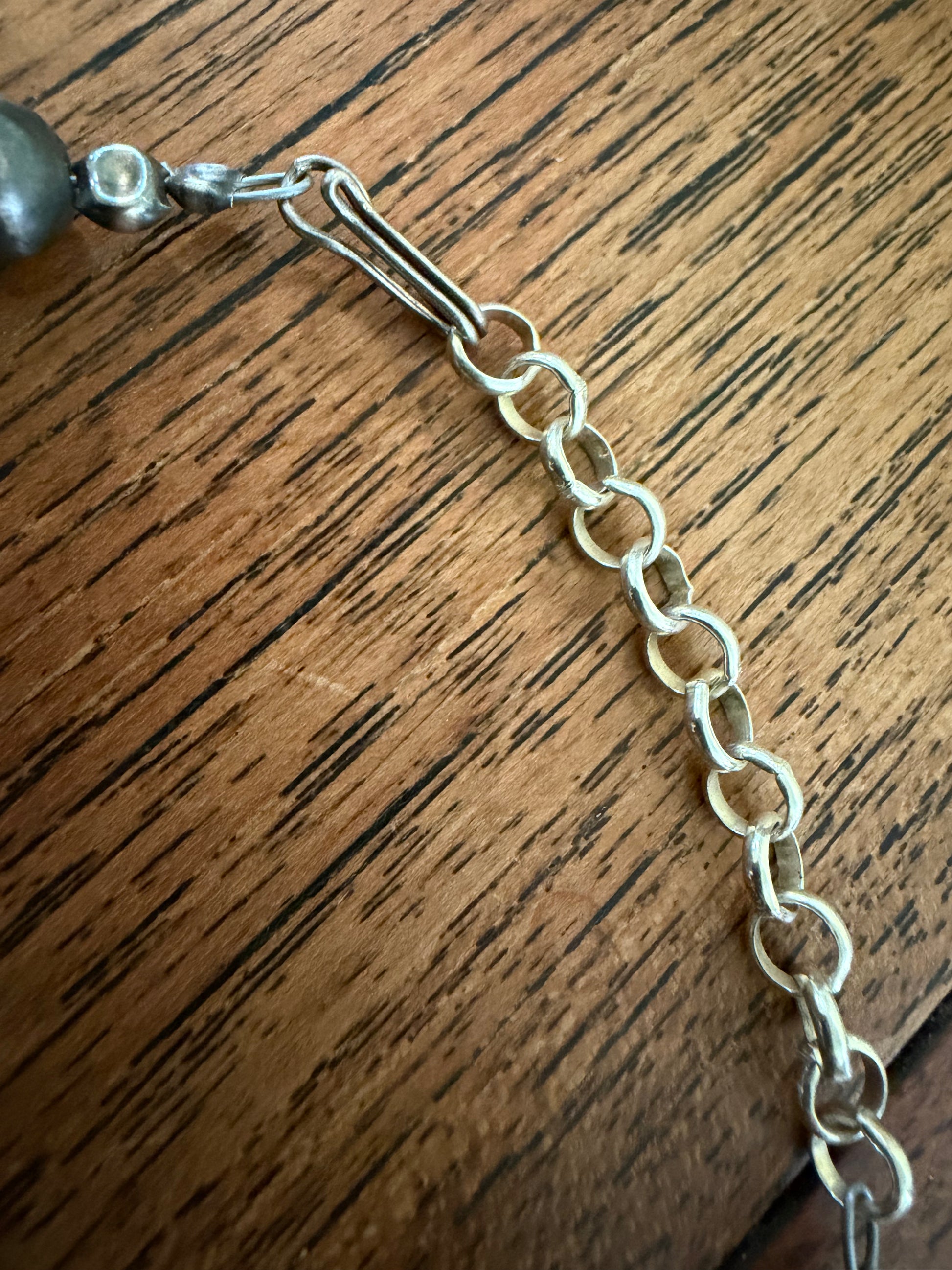 18” Cloud Mountain Barrel Bead Necklace with Oxidized Naja Pendant