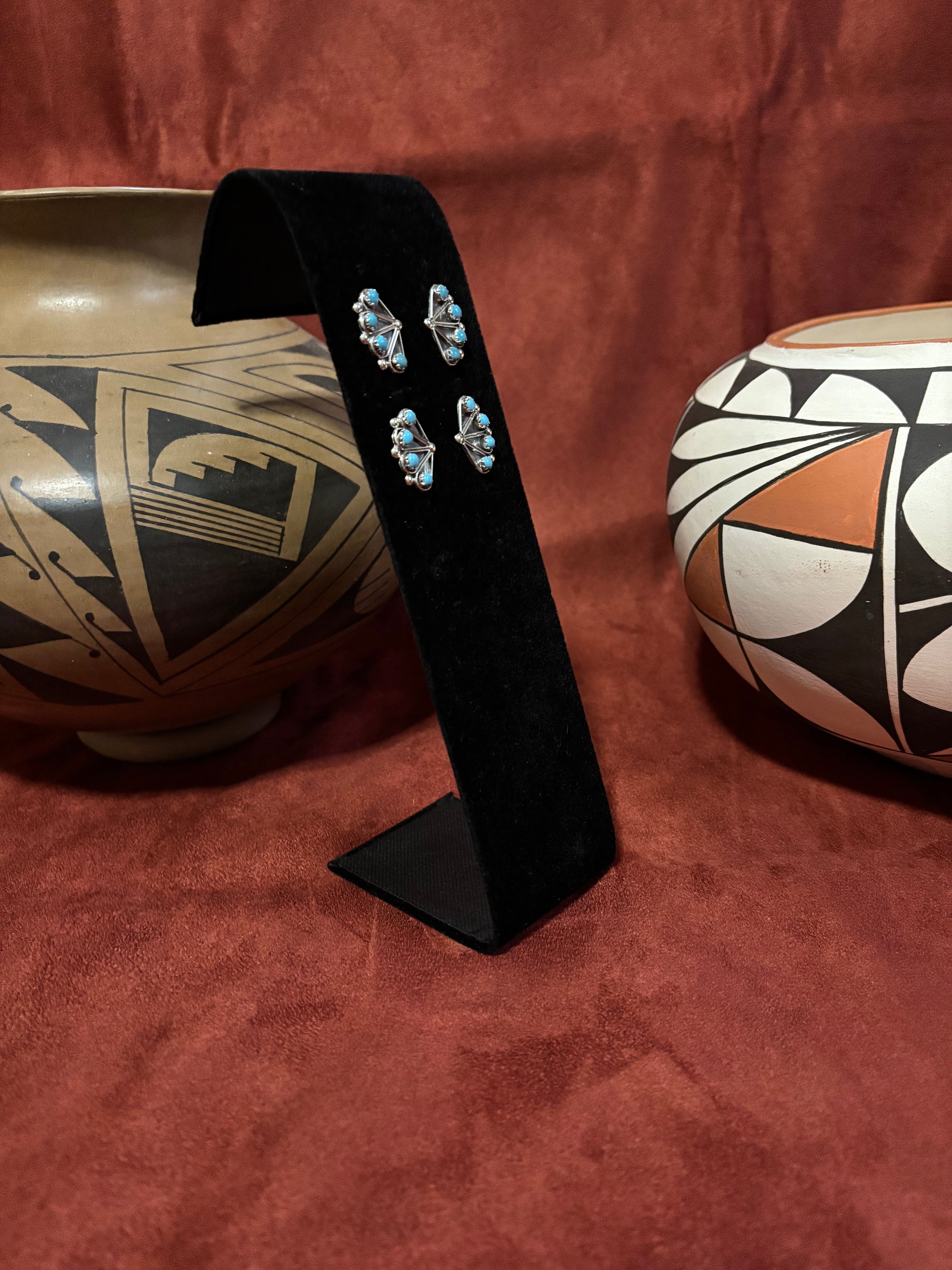 Handmade Navajo Turquoise Cluster Fan Earrings by Margilena Luna