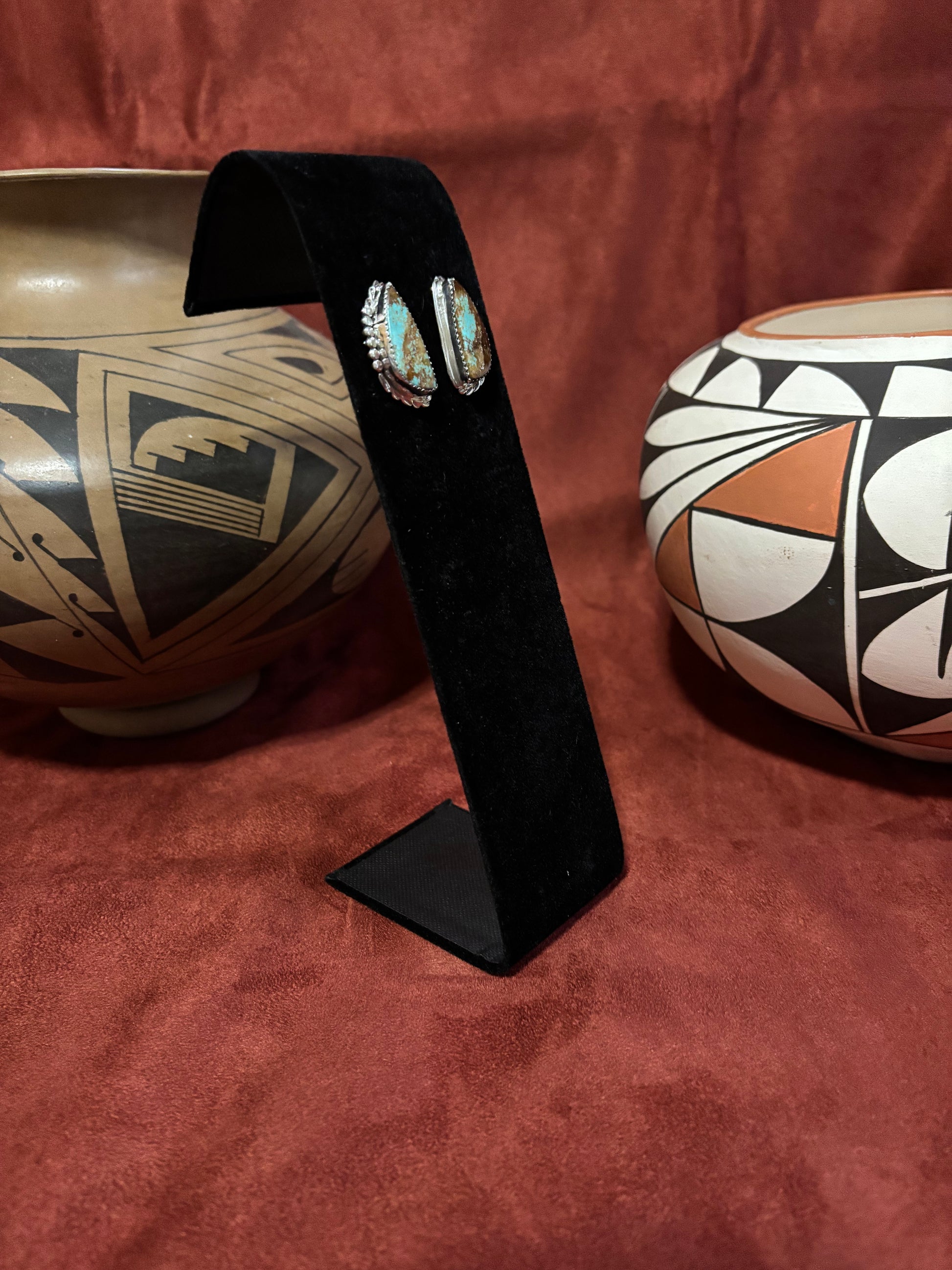 These earrings capture the spirit of the Southwest — bold, earthy, and refined. The combination of high-quality turquoise and intricate silverwork makes them a standout piece for any jewelry collection, whether dressed up or worn casually.