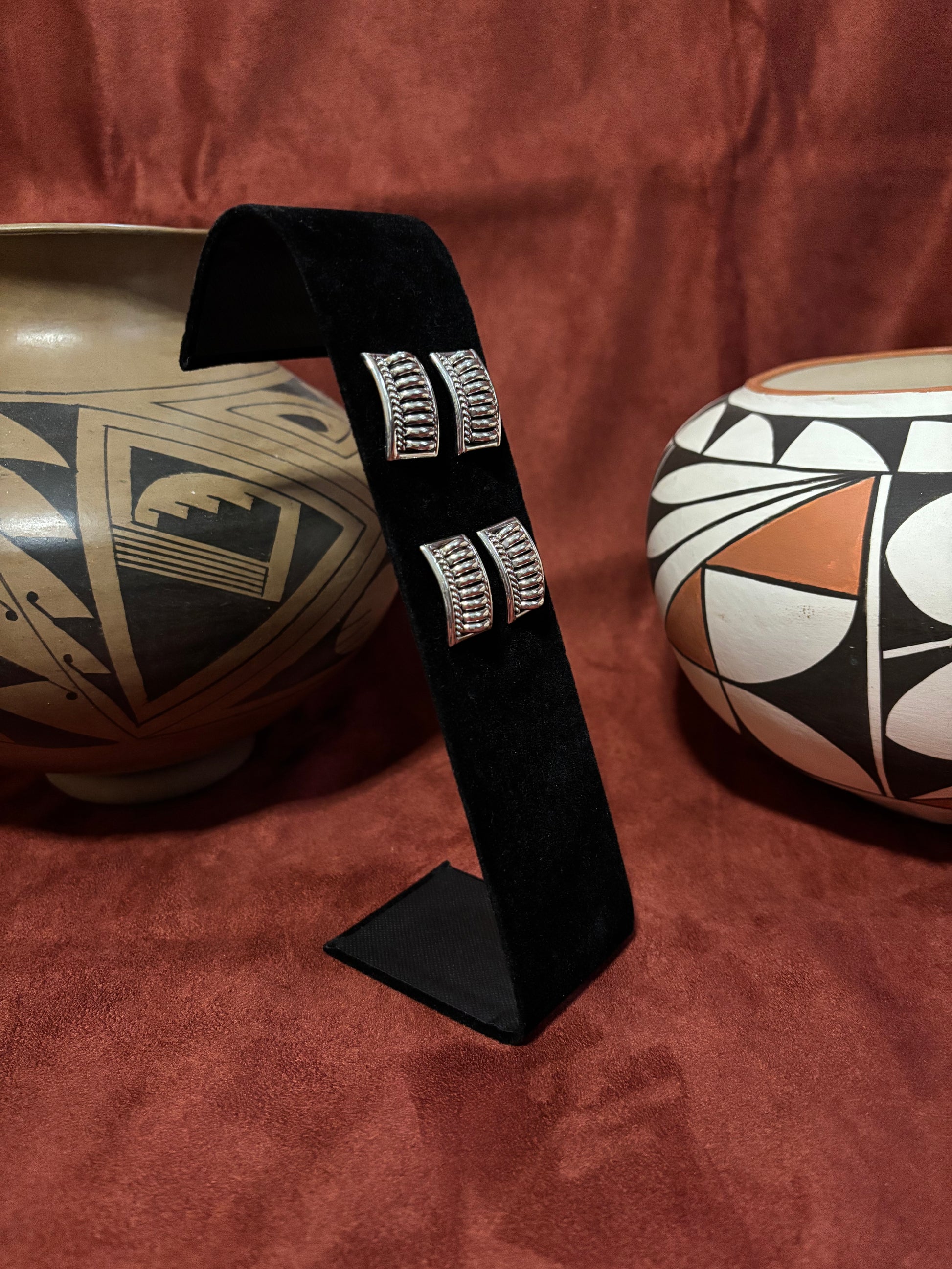 Each earring features Tom Charley’s signature precision and attention to form — a perfect balance of strength and elegance. Designed for comfort and everyday wear, these earrings elevate any look with timeless Southwestern style.
