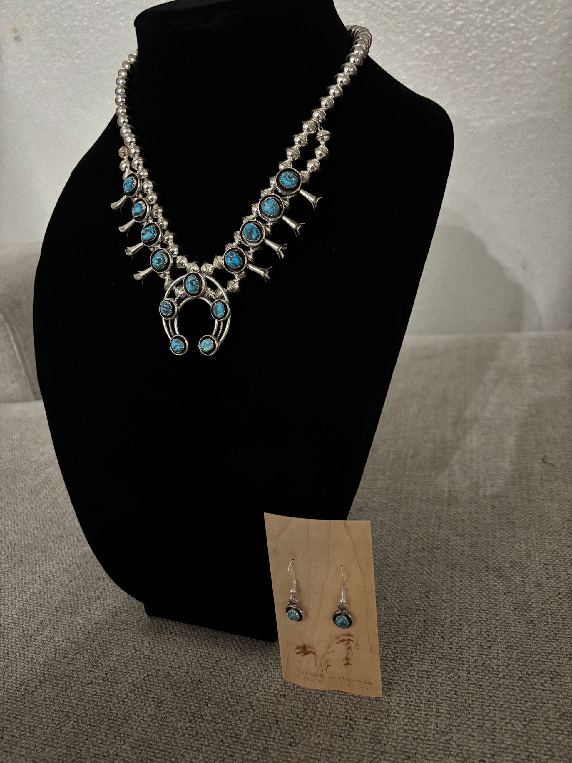 Petite Turquoise Squash Blossom Necklace Set by Lenora Grace