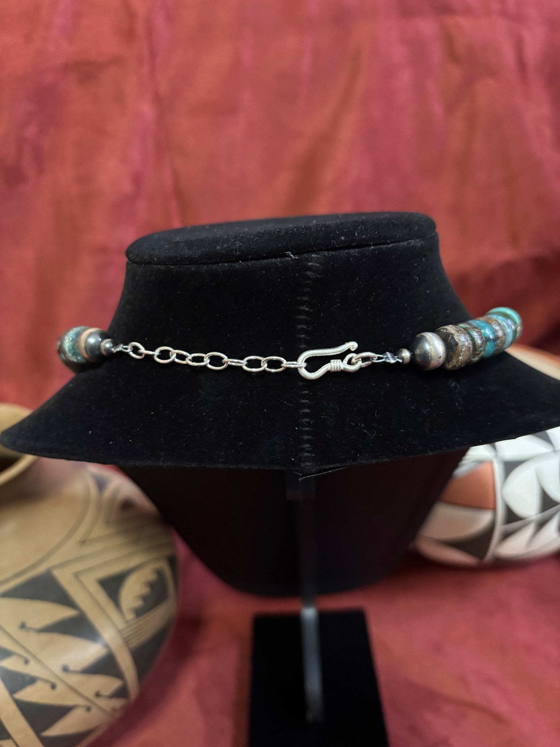 19” Polychrome Cloud Mountain Turquoise & Mustang Silver Pearls Necklace –