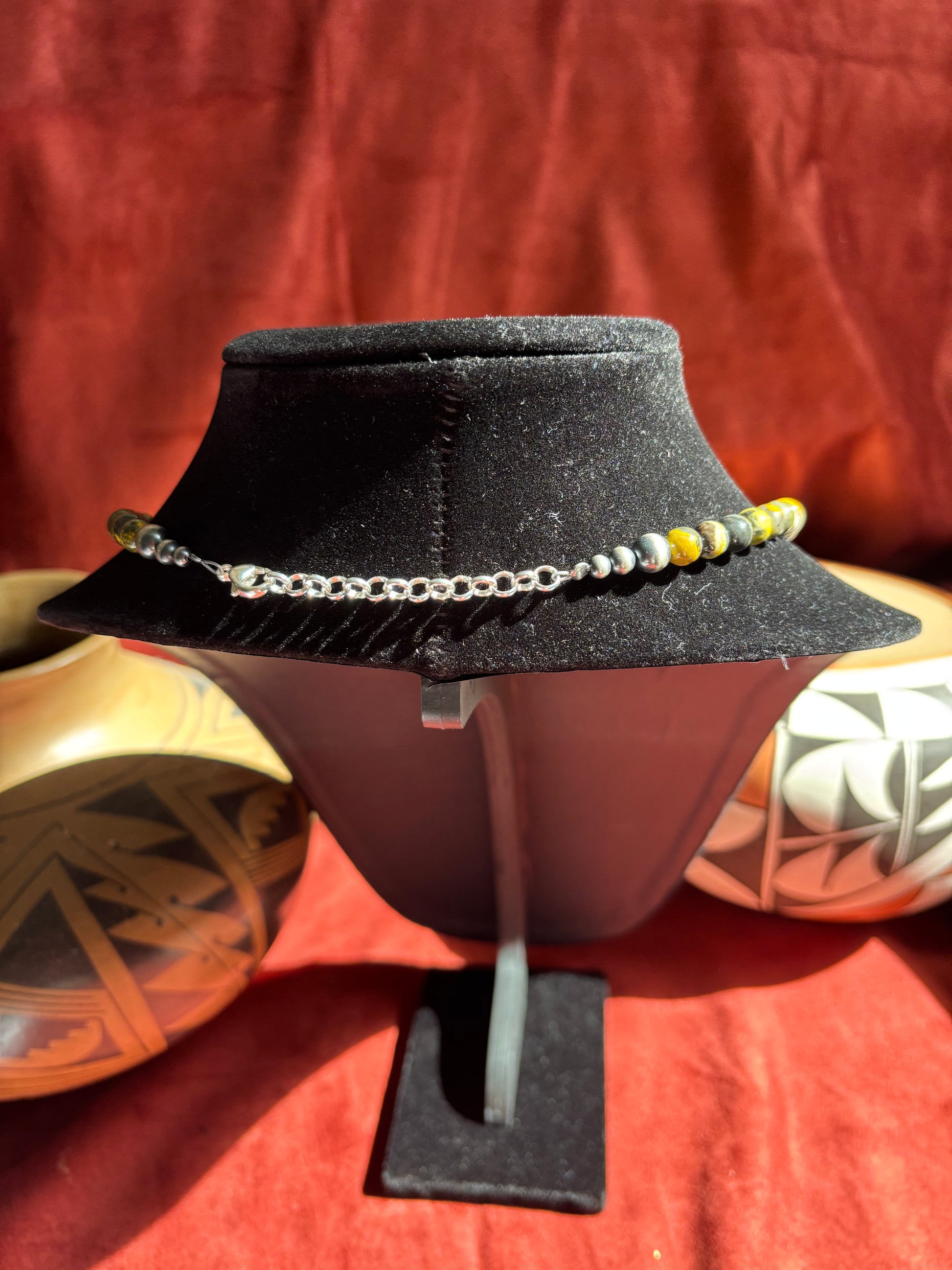 Perfect as a statement choker or for layering with longer strands, this necklace brings a touch of earthy elegance and contemporary style to any look. Known for its uplifting energy and striking patterns, Bumblebee Jasper makes this piece as unique as the person wearing it.
