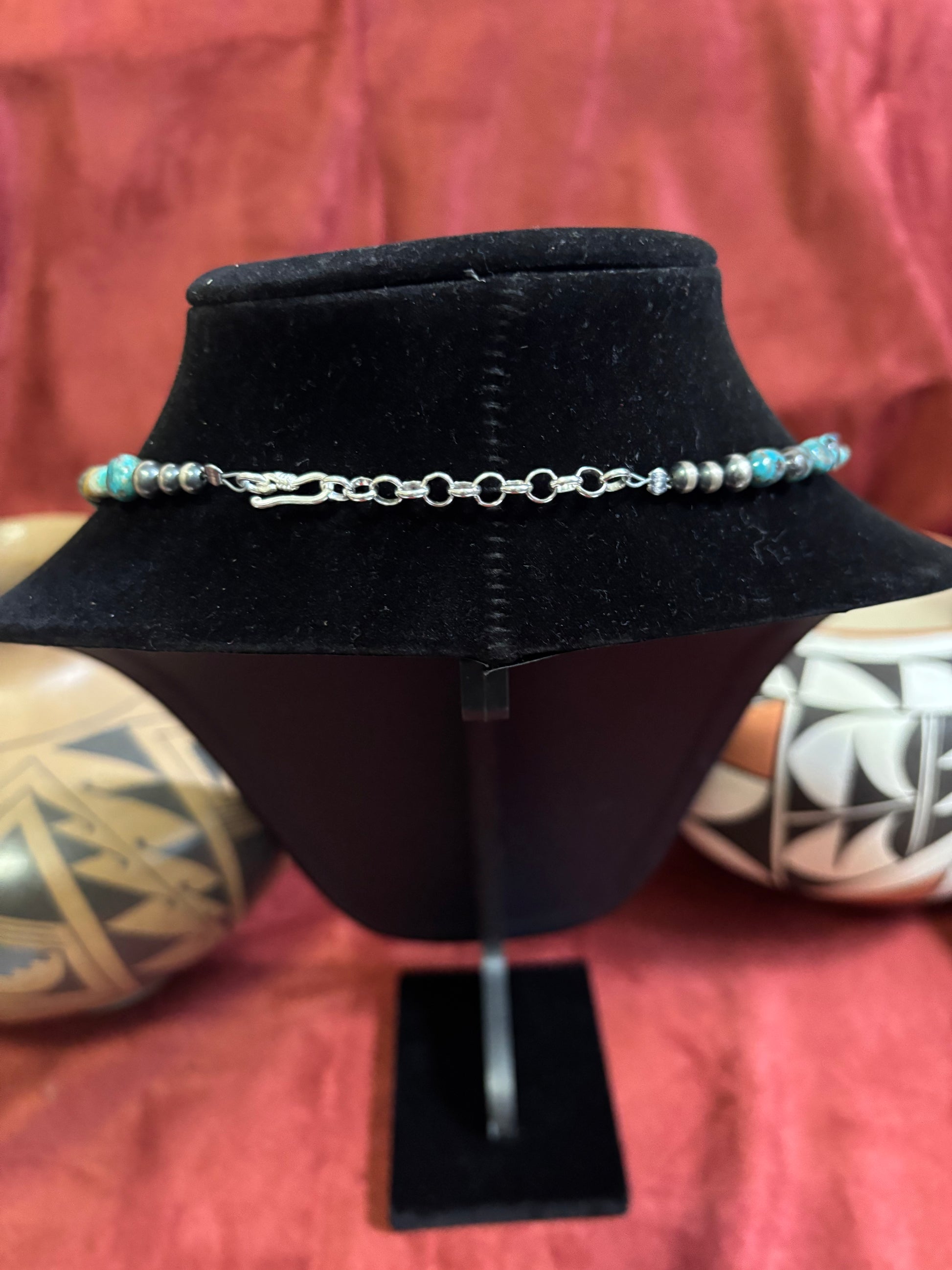 Finished with elegant silver pearl ends, this piece blends rustic Southwestern charm with refined sophistication. Whether layered with other turquoise favorites or worn as a standalone statement, it’s the kind of necklace that instantly turns heads.