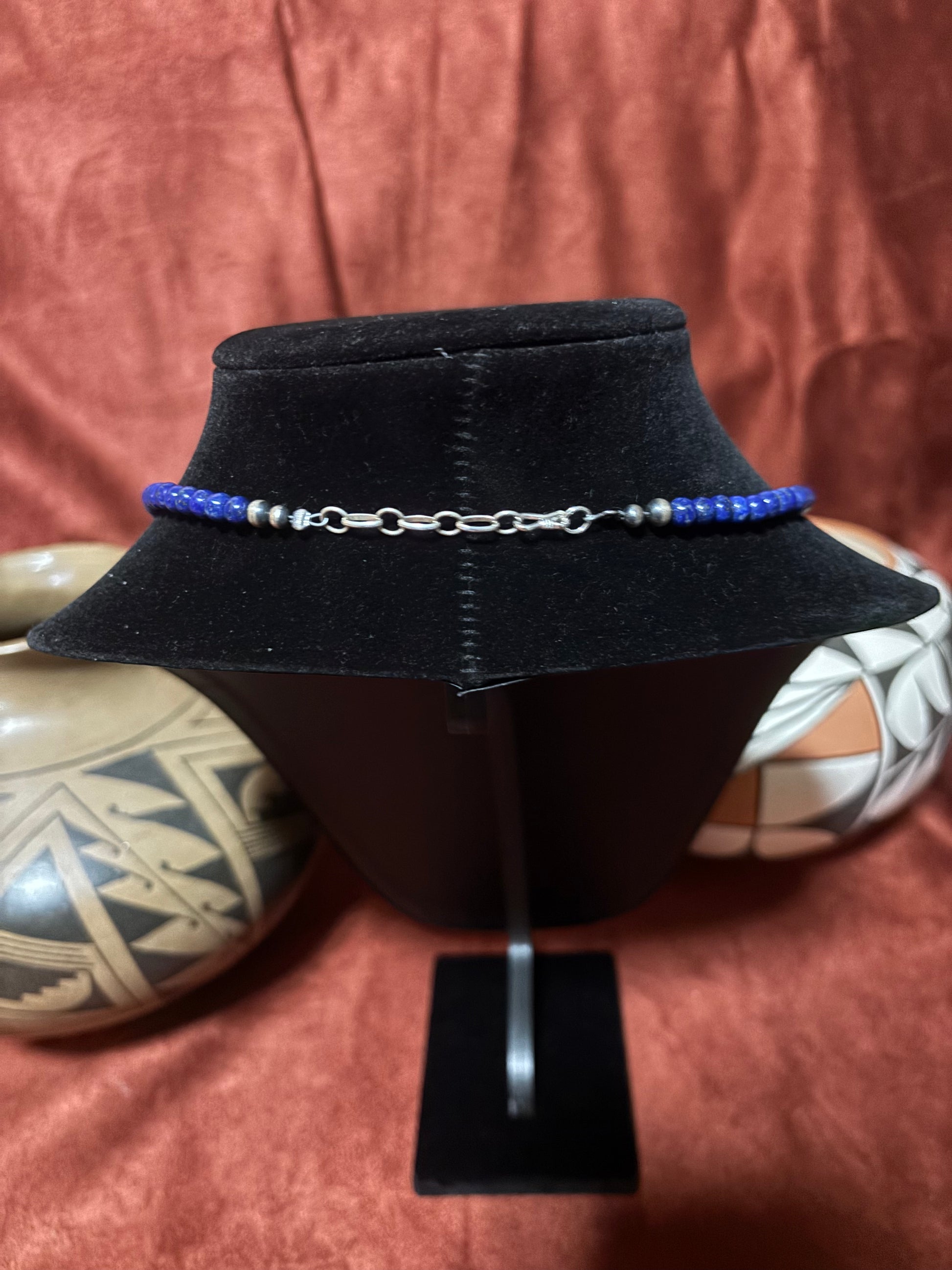 17” Premium Lapis Lazuli Necklace with Silver Pearl Accents