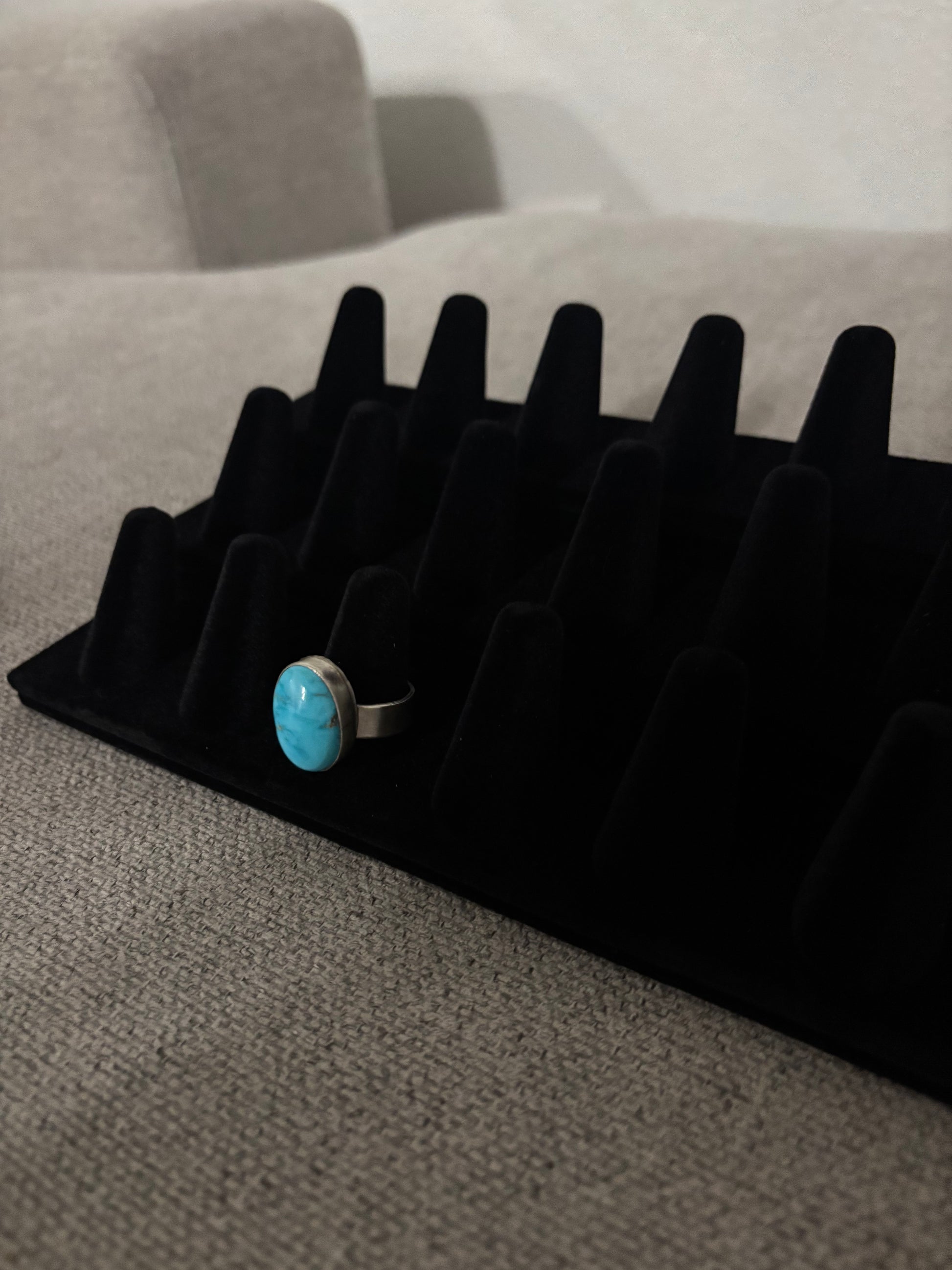 Beautifully handcrafted by Navajo artist Antoinette Martinez, this sterling silver adjustable ring features a vivid blue Kingman turquoise stone set in a bold, traditional silver design. Its adjustable band ensures a comfortable fit, while the natural color and matrix of the turquoise make each piece truly one-of-a-kind. A perfect blend of Southwestern artistry and everyday elegance.