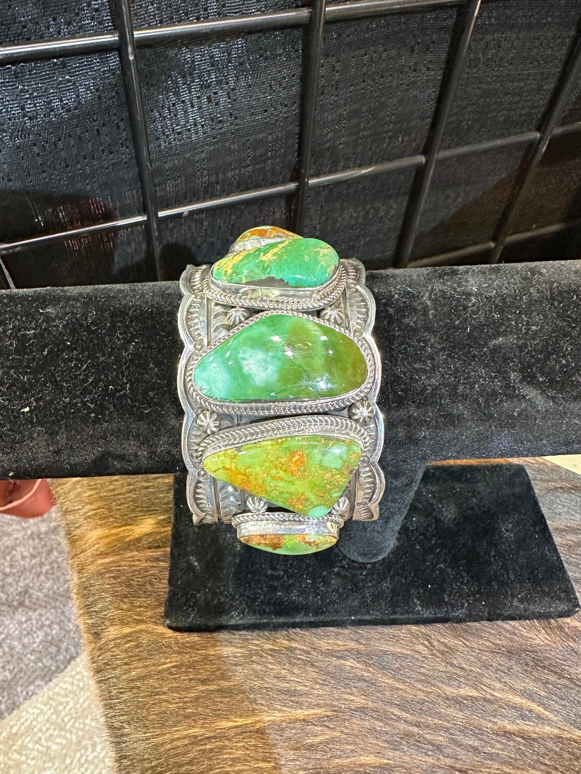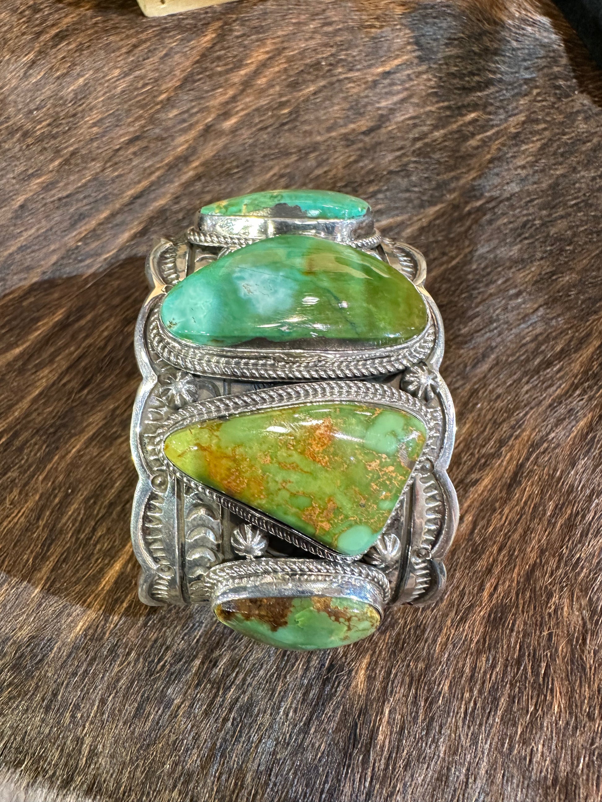 The Royston 5-Stone Mega-cuff combines classic design with modern style. Crafted with 5 stunning stones, this cuff is the perfect statement piece for any occasion. Its durable construction ensures long-lasting wear, making it a valuable addition to any jewelry collection. Elevate your look with the Royston 5-Stone Mega-cuff.