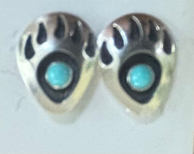 Sterling Silver Medium Bear Paw Shadowbox Studs with Turquoise